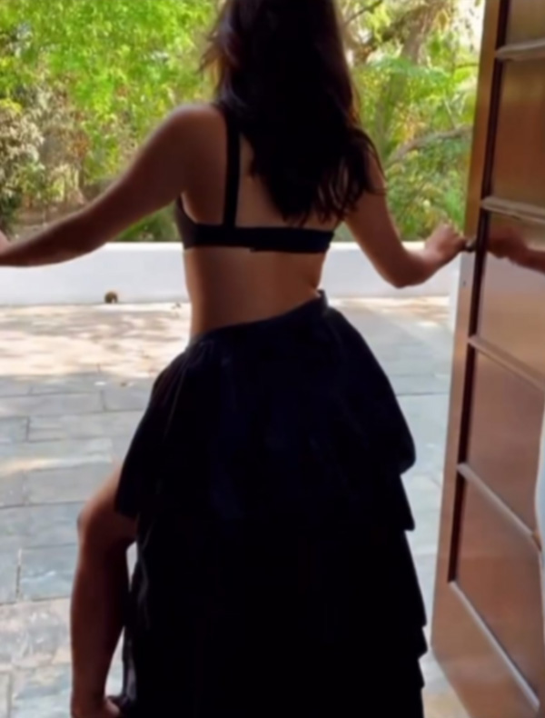 The diva took to her social media account, posting a series of monochrome pictures, dressed in a black bralette with a ruffled skirt.